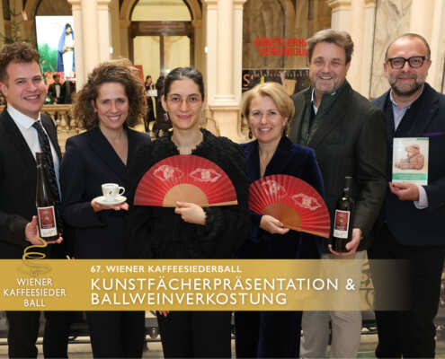 Am 9. Dezember präsentierten der Kaffeesiederball gemeinsam mit Julius Meinl und der Galerie Ernst Hilger erstmalig im Salon des Künstlerhauses die Kunstdamenspende für den Ball 2026. Die Julius Meinl Kunstfächer zeigen exemplarisch die Verflechtung von Kunst und Kultur mit der Wiener Kaffeehauskultur.